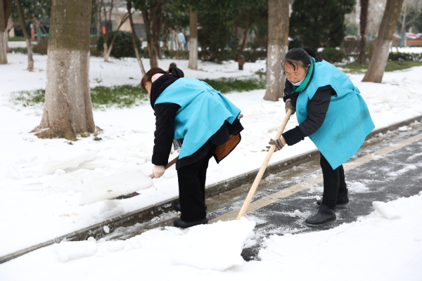 据悉,为了尽量降低降雪结冰对学生返校的影响,保障学生返校安全,学校第一时间召开专题工作会,要求相关部门做好低温雨雪冰冻灾害防范应对。22日以来,学校连续多日组织后勤保卫等工作人员扫雪除冰、清除路障,落实落细各项防灾举措及开学准备工作。