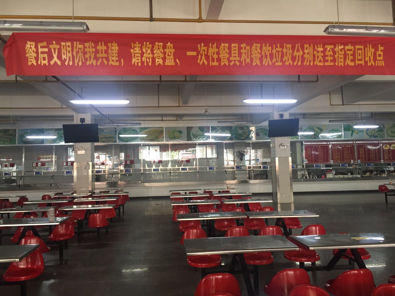 另一方面,我部加强宣传力度,食堂各区域设置横幅,呼吁师生就餐完毕后主动将餐盘、一次性餐具和餐饮垃圾分别送至指定回收点,共建餐后文明。