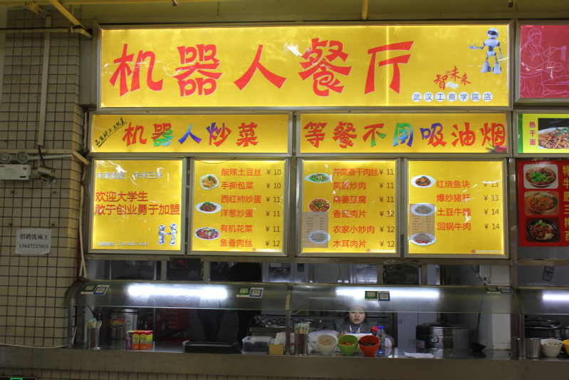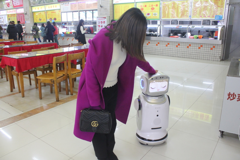 除加工菜品外,炒菜机旁的小小机器人也格外吸人眼球,消费者可以与它进行简单的交流,十分有趣。