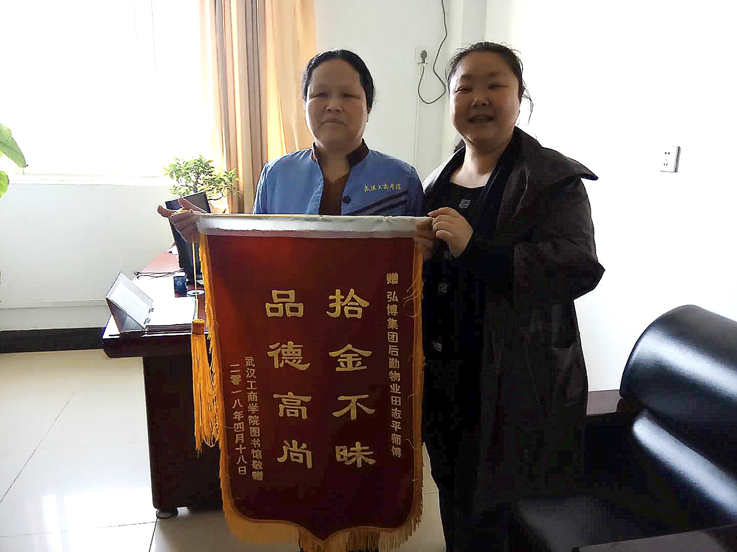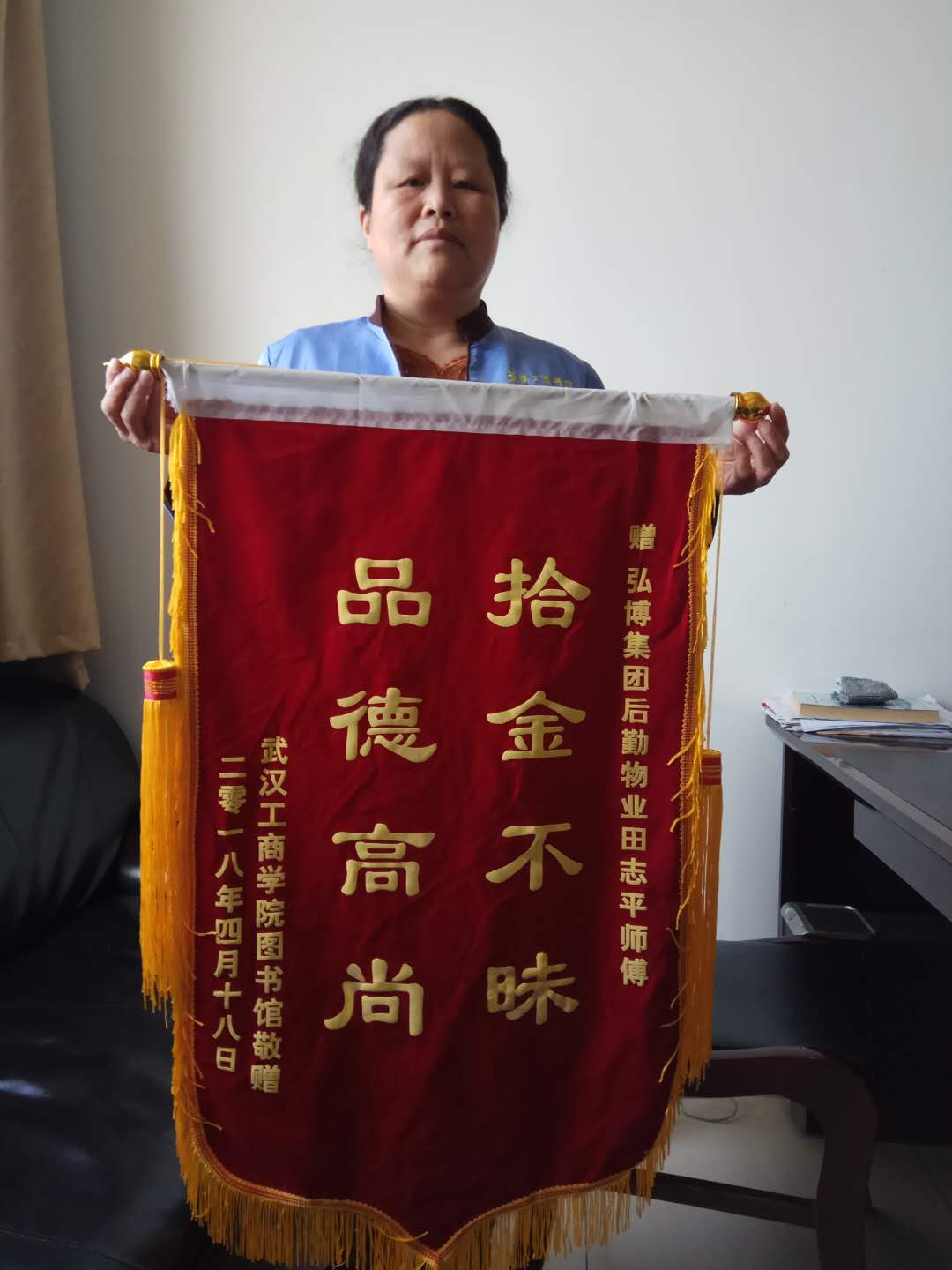 图书馆领导知悉后也为田志平同志拾金不昧的精神点赞,并赠送了“拾金不昧 品德高尚”的锦旗。