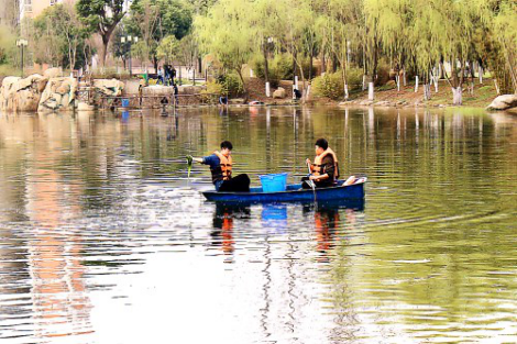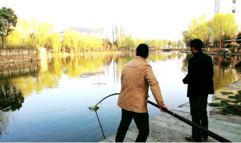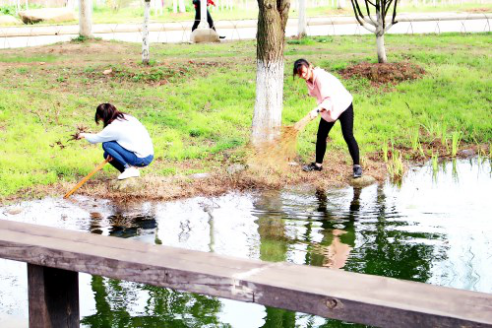 在清理内湖现场,环生学院师生也是干劲冲天,信心满满。
