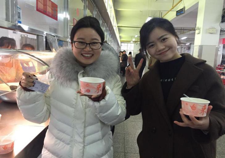 一早,食堂工作人员早早开餐,除了欢迎师生返校,祝大家节日快乐的欢迎词外,还准备了香浓软糯的汤圆,为节日送上了传统美食。