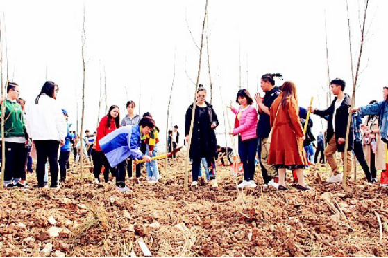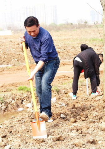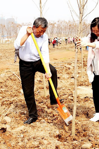 下午,各学院、各职能部门师生代表积极参加。在植树活动现场,大家三五成群,相互配合,挖坑、扶苗、培土、浇水,热情满怀,干劲十足。