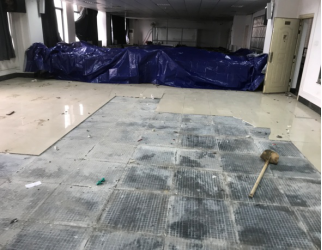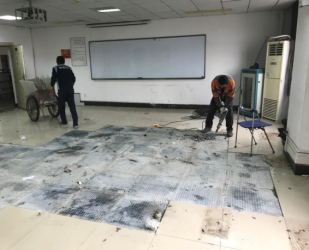 2、综合楼705教室地砖维修。整个705教室地板空骨,寒假期间,全部挖起重贴。