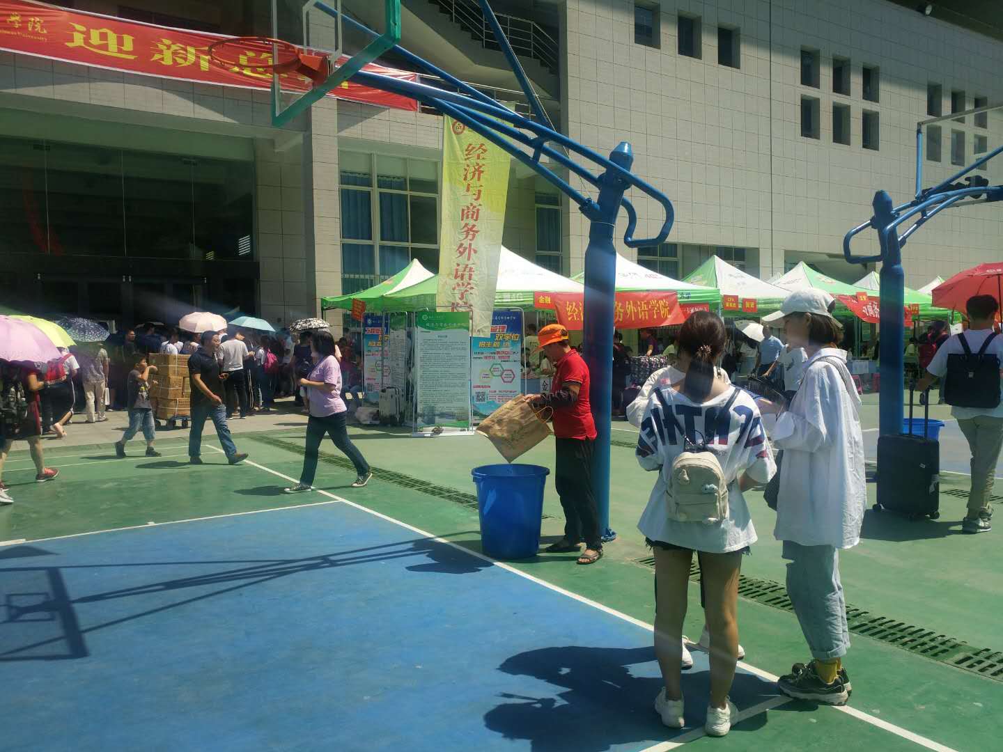 整个迎新工作人头攒动,秩序井然。新生报到率比较高,新生和家长对迎新工作普遍感到满意。