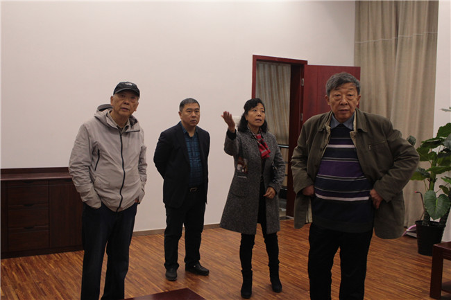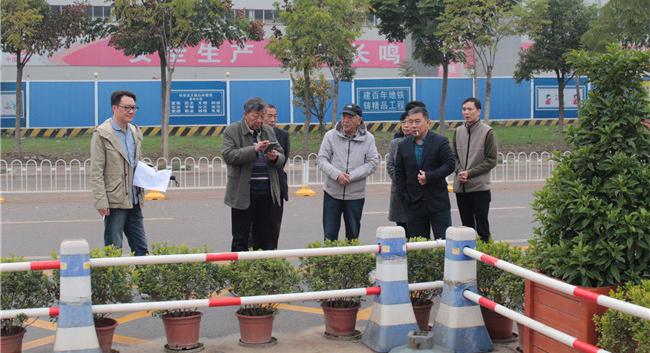 左四为园林顾问王传义先生,校领导桂裕清、后勤管理部一行现场陪同