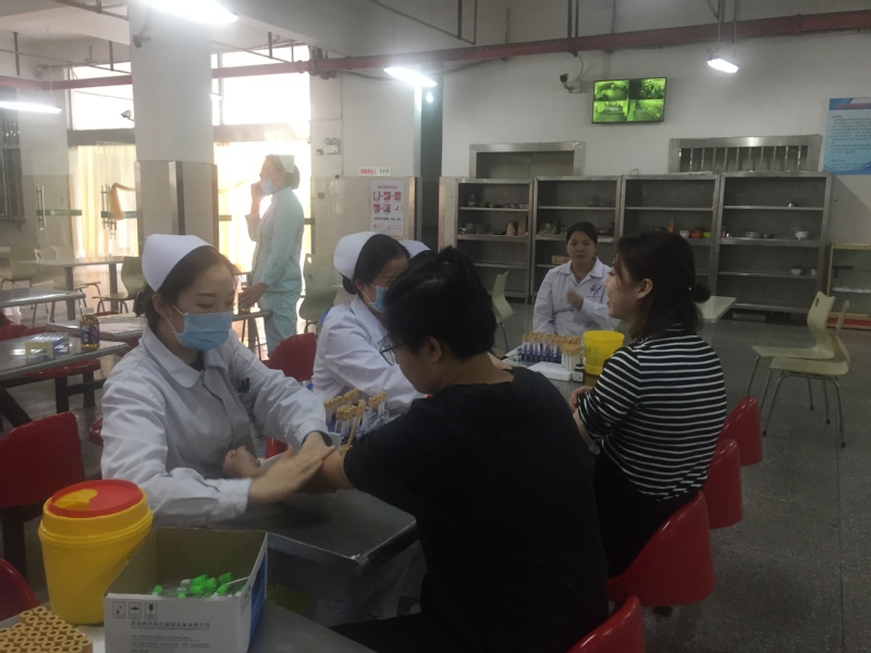 (2018年11月1日讯 编辑:林希)为切实落实食品安全责任,确保餐饮从业人员的健康,经营部组织员工于11月1日,经营部联合防疫站为校内餐饮从业人员在校内开展健康体检。此次体检包括抽血、胸透、肝功能等项目,由防疫站单位派车辆和工作人员进行一站式服务。
