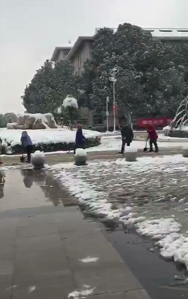 元旦这一天,大学覆盖了整个校园。在给学校带来漂亮冰雪景观的同时,也给师生的出行带来了不便。后勤环境维护中心及时响应,各个岗位在假期的电话铃声中匆忙赶来学校,在综合楼、外语楼、图书馆、食堂等人流量多的地方铺草垫、洒工业盐,集中铲除综合楼周边、食堂周边等地方的冰雪,给师生带来方便、带来安全。看着学生稳步走出宿舍,走出食堂,高兴打雪仗、堆雪人的场面,保洁冻得红通通的脸庞上也印上了满足的笑容。