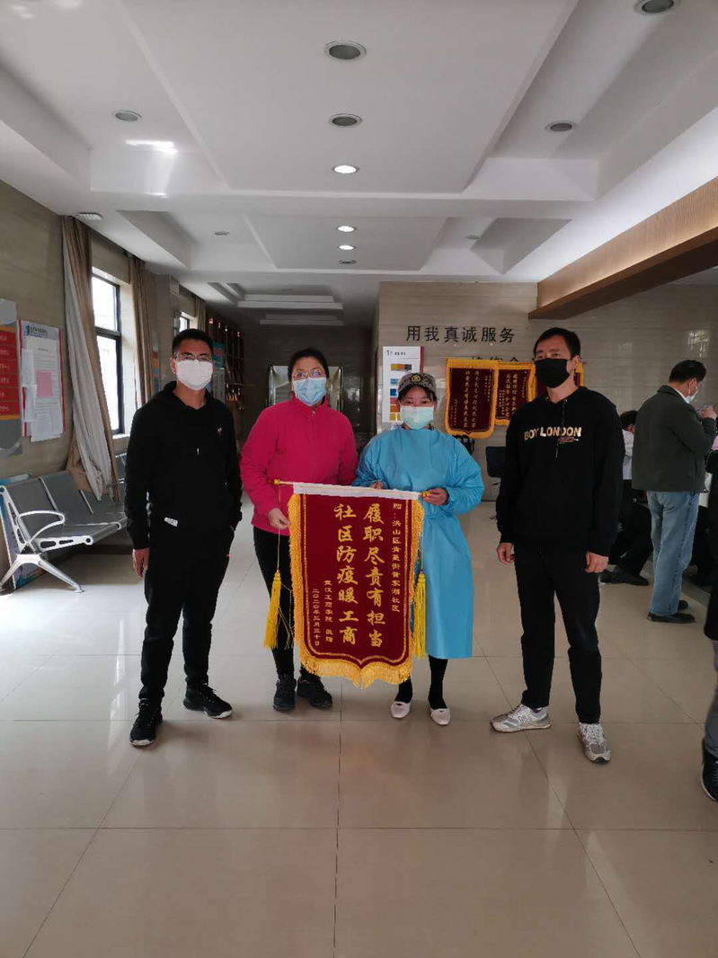 “李主任,我们过来给你们送一面锦旗!”4月8日上午,bat365登录平台入口后勤管理部陈山等代表特地将一面写有“履职尽责有担当,社区防疫暖工商”的锦旗,送到黄家湖社区李凤莲主任的手中,对社区在疫情防控工作期间为bat365登录平台入口做出的突出贡献和辛苦努力表示敬意及感谢。