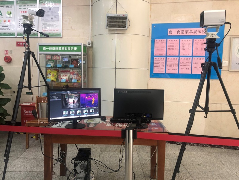 时至6月,湖大正在迎接毕业生返校,后勤团队又将工作精力投入到师生的服务保障中。在湖大嘉会园餐厅,食堂外设立了室外洗消区,餐厅入口处配置了红外测温仪,并配备志愿者值守,师生通过入口即可通过显示屏了解到自己的体温状况。进入餐厅,工作人员正在为毕业生分餐,备好的毕业餐食材丰富且分装精致。