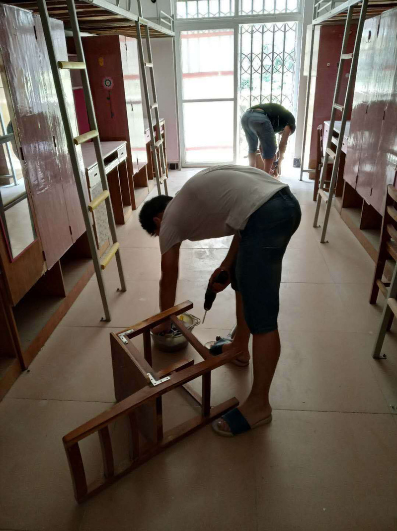 房管中心组织专人,对公寓公共设施及寝室桌椅、储物柜、空调进行了维修维护。考虑到公寓是人员密集型居住场所,为防治传染病的发生,后勤管理部组织专业队伍对学生公寓进行集中消杀,并在弘德楼安装了门禁系统,开启“刷脸”时代,以保障弘德公寓的业务的安全。