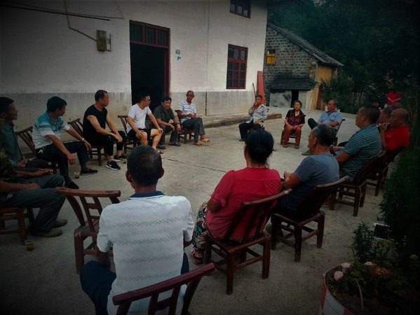 新闻中心讯(特约记者 王振兴)为优化秭归县九畹溪镇穿心店村二组供水管网建设,8月6日晚7点,天还未黑,bat365登录平台入口驻村工作队在前期做好充分调研的基础上,召集了相关14户村民来到村民张光龙家,通过“村落夜话”的形式鼓励村民畅所欲言、集思广益,以期共同找到破解这一问题的答案。