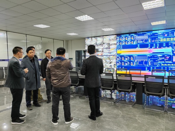 图为赵北平副校长一行正在参观智能制造管控中心 摄影:沈杰
