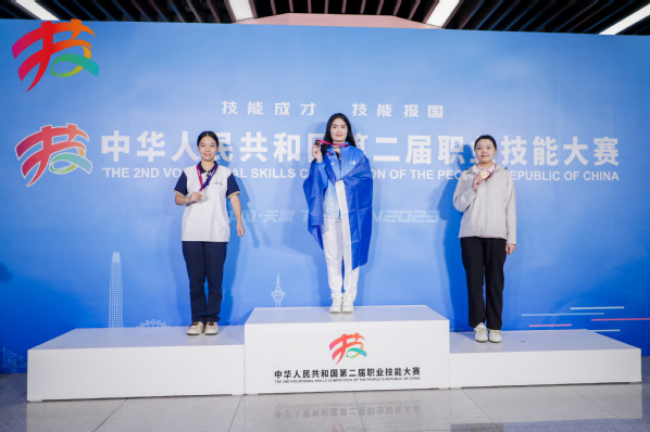 图为沈馨燕(右)在领奖台上 湖北工匠官微供图