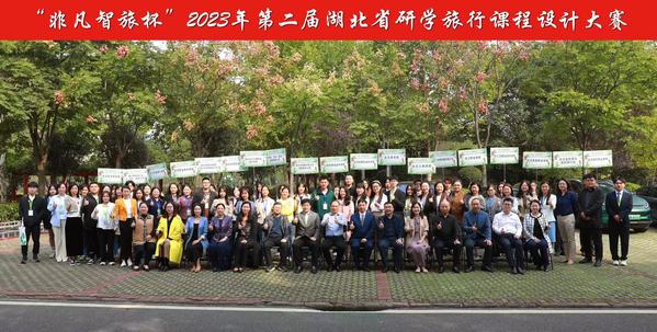 图为“非凡智旅杯”2023年第二届湖北省研学旅行课程设计大赛参赛人员合影