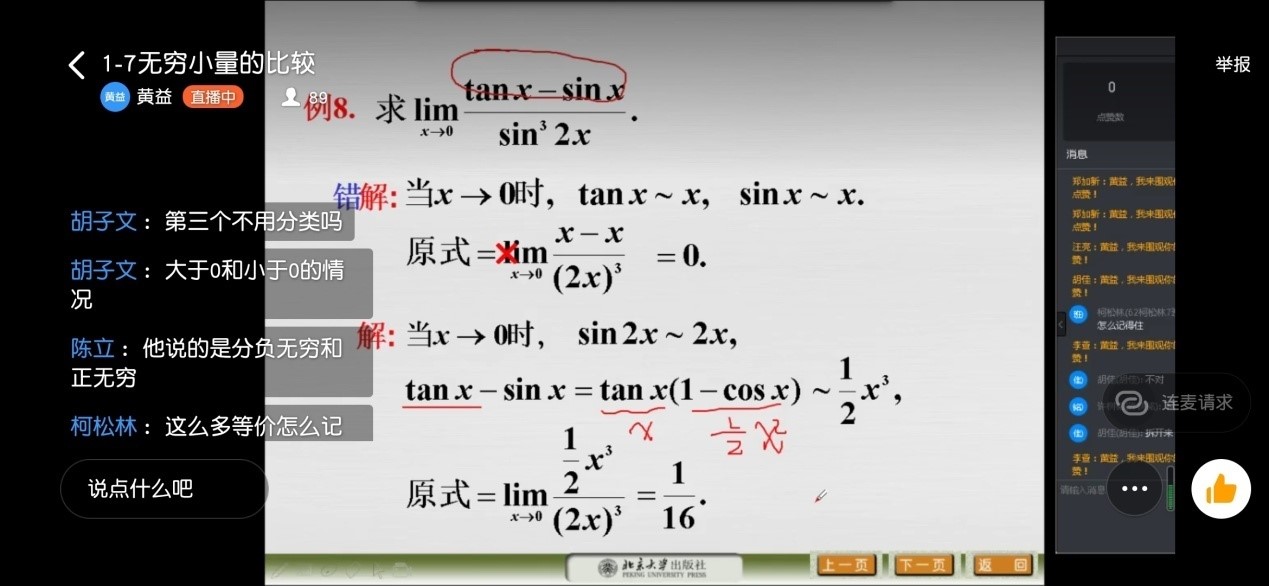 2.钉钉直播效果较好,时长整整两课时,授课思路清晰,习题讲解认真细致,课中师生互动较多,对学生提出的疑问能够及时进行解答。