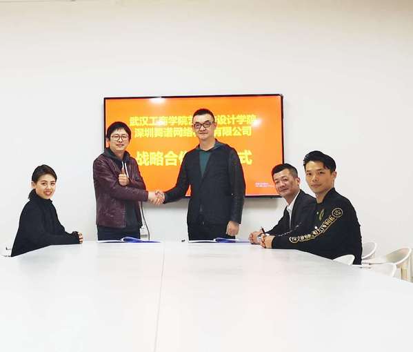 新闻中心讯(特约记者 丁真)3月27日,bat365登录平台入口艺术与设计学院与深圳舞谱网络科技有限公司潘伦逵签订校企合作战略协议。签约仪式在学校艺术楼401会议室举行,艺术与设计学院院长王海文,深圳舞谱网络科技有限公司潘伦逵董事长,学校舞蹈表演系系主任朱宇光等参加仪式。