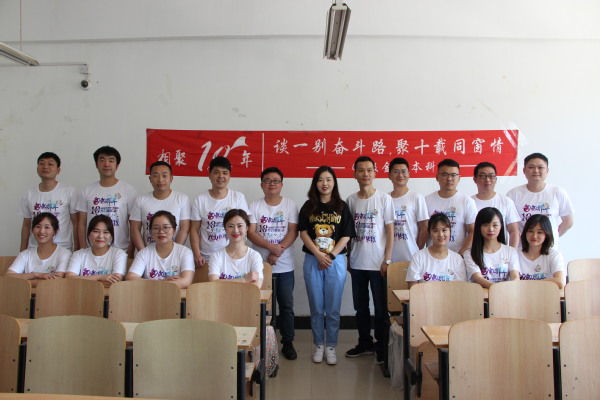 当天上午,校友们陆续到达综合楼大厅签到墙处签到,并领取印有“情忆老同学”字样的特制短袖及学校纪念胸章。随后,17位校友与当年的辅导员谈玉婷,一起回到曾经上课的综合楼203教室召开“我们的十年”主题班会。大家一起观看视频叙当年事,忆往日情,回忆毕业十年的经历,表达着各自对往昔的深深眷恋、重逢后的浓浓喜悦以及对未来的美好憧憬。