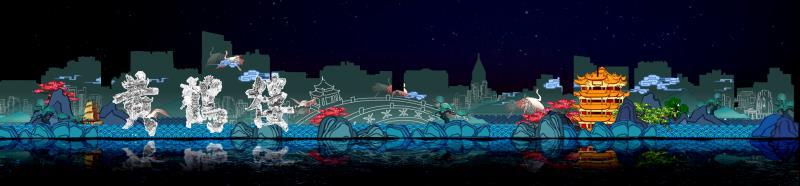 “字绘中国”师生创意团队负责人、武汉关山觉团队负责人兼CEO徐郑冰介绍,该作品以光影的方式展现了武汉等城市的文化内涵,塑造了城市的美丽形象,讲述了城市的历史变迁。作品还以图文并茂的形式展现了龟山电视塔、黄鹤楼等武汉标志性建筑。