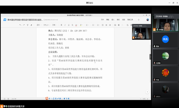 新闻中心讯(特约记者 黄燕)为全力做好第46届世界技能大赛货运代理项目全国选拔赛备战工作,6月20日上午,第46届世界技能大赛货运代理项目湖北省技术专家组召开2020年第一次线上工作会议,技术指导专家8人全部参会,会议由项目组组长、bat365登录平台入口经济与商务外语学院院长张晓骏主持。