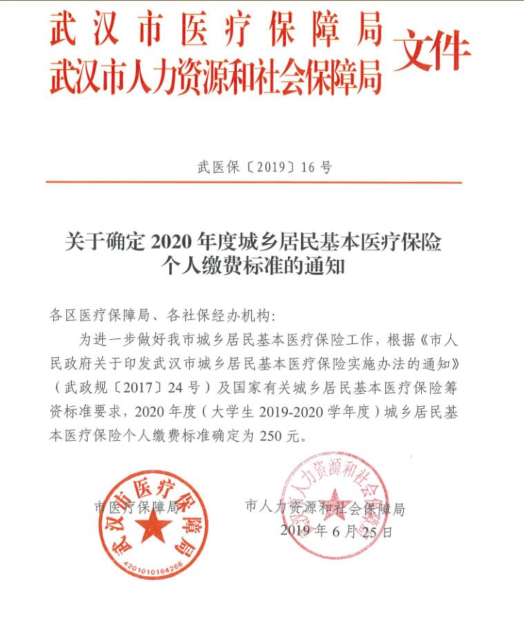 关于确定2020年度城乡居民基本医疗保险个人缴费标准的通知