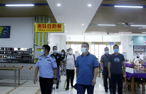图为工作组在校门口学生返校入学点的排队等候区检查指导工作 摄影:孙欢欢