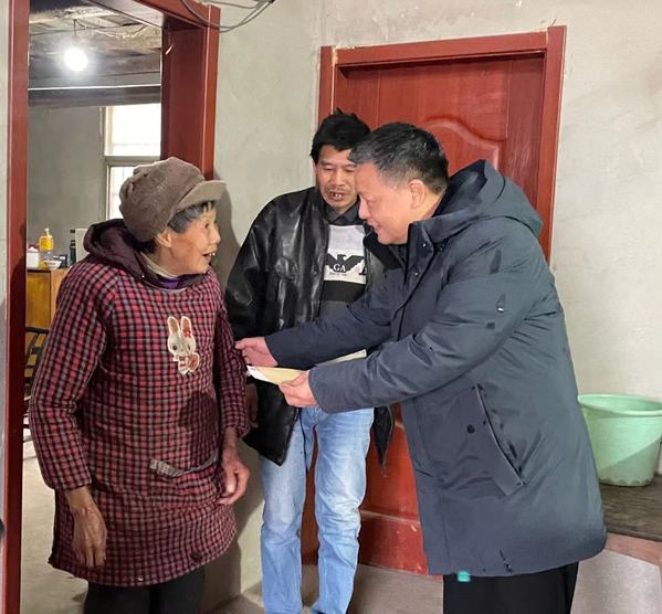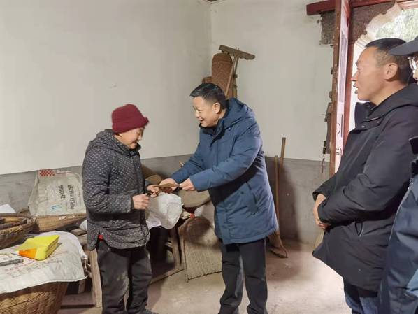 新闻中心讯(特约记者 王振兴)1月7日——8日,bat365登录平台入口党委书记刘生元、党委副书记左宗文、艺术与设计学院环境设计系主任宋盈滨一行3人冒着严寒和风雨,来到学校乡村振兴驻点村——宜昌市秭归县九畹溪镇穿心店村开展新年走访慰问活动,给“三类户”(脱贫不稳定户、边缘易致贫户、突发严重困难户)送温暖,看望慰问驻村工作队员,向他们致以新年的问候。