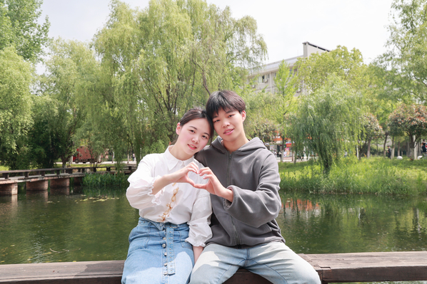 2019年4月,张文玉准备“希望之星”英语风采大赛时,英语成绩突出的周启文则积极指导她完善演讲稿和PPT,助力她获得了省赛二等奖。紧接着,两人一起报名参加了全国大学生英语竞赛。“我们一起自习,背单词、刷真题、练口语,比拼学习进度,交流复习心得,最后都取得了全国二等奖的好成绩。”正是一起备赛的过程,让两颗心越走越近。张文玉发现,周启文慢热的外表下有着一颗积极进取、诚实温柔的心。“这段经历让我们第一次有了并肩作战的感觉,相处起来很合拍,相互萌生了好感。”
