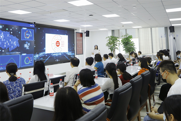 图为刘生元书记一行正在了解荆楚网舆情监测平台 摄影:王锦丰