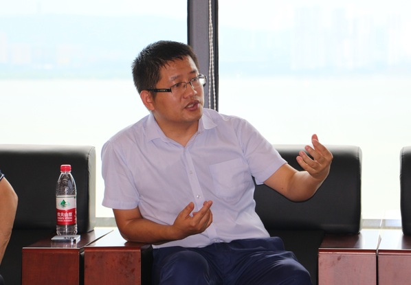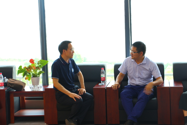 图为巴能军董事长正在与戴意涛副区长交流中 摄影:李洋洋