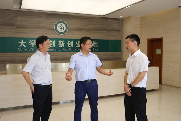 图为戴意涛副区长(中)正在参观大学生创新创业基地 摄影:李洋洋