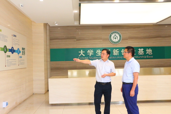 图为戴意涛副区长正在参观大学生创新创业基地 摄影:李洋洋