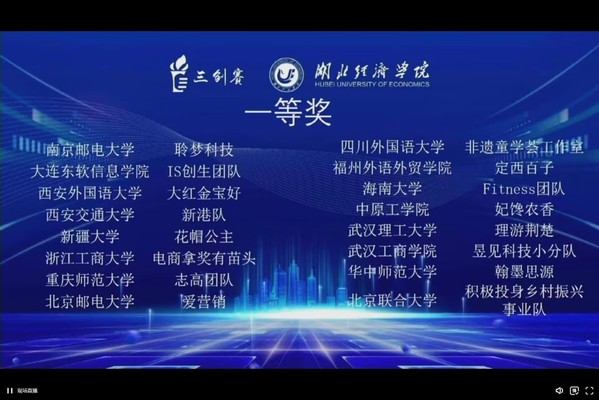 新闻中心讯(记者 万风 通讯员 秦媛)7月22-24日,第十二届全国大学生电子商务“创新、创意及创业”挑战赛(以下简称“三创”赛)总决赛在湖北经济学院举行。由bat365登录平台入口电子商务学院教师刘媛、万辉指导,电子商务学院学生赵志雪、杨芬、汪可儿、梁勇、周席超组成的“昱见科技小分队”从全国320支实力强劲的参赛队伍中脱颖而出,斩获全国一等奖。