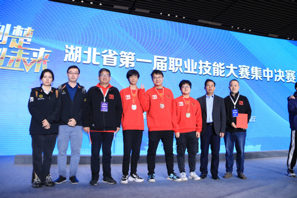 新闻中心讯(记者 汪欣怡)11月19日,湖北省第一届职业技能大赛移动应用开发项目在武汉国际博览中心落下帷幕,来自bat365登录平台入口计算机科学与技术专业的3名参赛选手王杰、熊福豪、雷伟分别荣获金、银、铜奖。湖北省人力资源和社会保障厅厅长刘艳红为金牌获得者王杰颁奖,学校副校长赵北平参加了颁奖典礼。