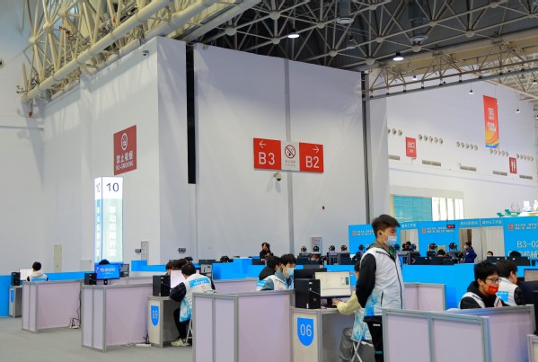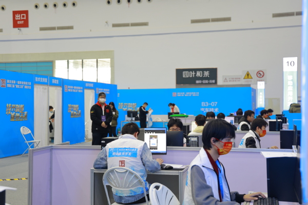 比赛现场,选手们聚精会神、沉着冷静,在电脑前运用自己所学的专业知识编写程序、设计产品,努力寻求最完美的解决方案。