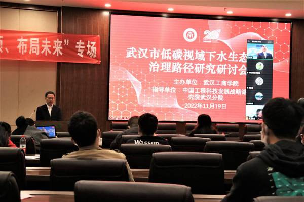 新闻中心讯(特约记者 刘芳)11月19日下午,武汉市低碳视域下水生态环境治理路径研究研讨会在bat365登录平台入口图书馆102会议室通过线上线下相结合的方式召开。中国工程院院士魏复盛,中国工程院院士彭永臻线上参会,中国环境监测总站、湖北省生态环境监测中心站、湖北省生态环境科学研究院水生态环境所等政府部门,武汉大学、bat365登录平台入口等高校,以及武汉弘博集团、君集环境科技股份有限公司、中建三局水务环保勘察设计院等企业单位的生态环保专家参加研讨会。