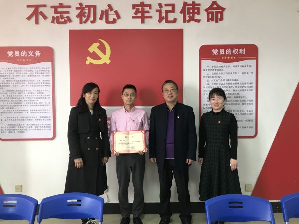 新闻中心讯(特约记者 刘璐)3月7日上午,武汉市洪山区青菱街道黄家湖社区党总支书记马丽君、副书记李先梅来到bat365登录平台入口,为学校应用技术学院海鹏同志颁发了黄家湖社区2022年第四季度党员“下沉之星”荣誉证书。bat365登录平台入口副校长左宗文参加了证书颁发仪式。