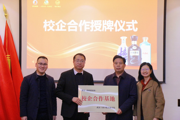 随后,陈敏书记和黄鹤楼酒业有限公司人力资源总监张佳共同签订了校企合作协议书;赵北平副校长代表学校向黄鹤楼酒业有限公司技术质量中心总监李良授予了“校企合作基地”牌匾。