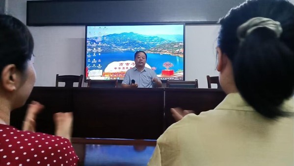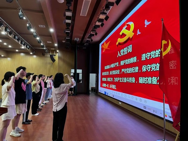 马克思主义学院教师党支部书记涂婷带领党员们重温誓词。岳妮娜摄