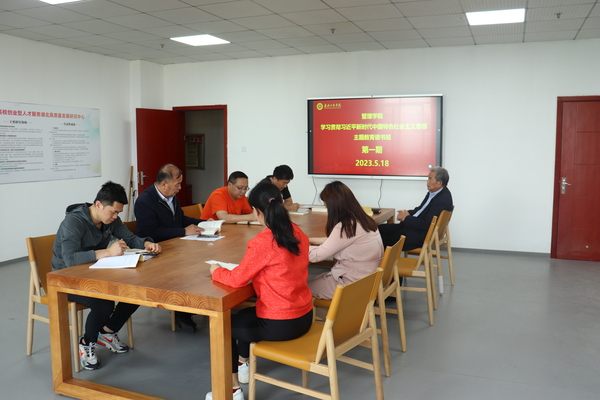 图为学院开展主题教育理论学习