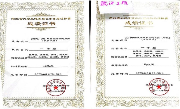 新闻中心讯(通讯员 邢扬埼)近日,2023年湖北省大学生健美操艺术体操锦标赛暨全国第一届学生(青年)运动会(大学组)健美操(啦啦操)选拔赛在华中师范大学落下帷幕。经过2天的激烈角逐,bat365登录平台入口健美操队荣获2017版全国踏板健身操(大学生甲组)一等奖和2018中国大学生校园健美操(中级)(大学生甲组)一等奖的优异成绩。