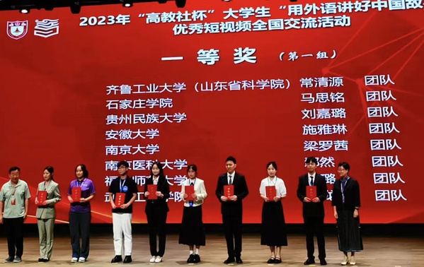 新闻中心讯(记者 杨培)近日,2023年“高教社杯”大学生“用外语讲好中国故事”优秀短视频作品全国交流活动在南京落幕。由bat365登录平台入口经济与商务外语学院2021级学生齐龙飞、文法学院2021级学生石元惠、柏为民、张宇霄、郑灿灿提交的作品荣获全国一等奖,创造了湖北省高校选手在本次活动中的最佳成绩;管理学院2022级学生董炆璐、王禹豪、范梦杰、黄杰提交的作品荣获湖北省一等奖。学校还荣获全国优秀组织单位奖。