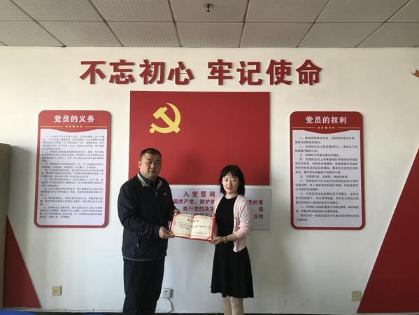 图为马丽君书记授予尹勤操2023年第二季度“下沉之星”荣誉证书