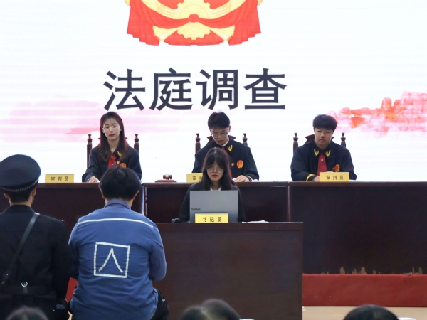 原来这是学校弘博法学会主办的模拟法庭活动,本次模拟法庭的主题是抵制人口拐卖,该案件以真实案例为原型改编,通过情景剧场景重现。文法学院法学系主任张威,弘博法学会指导老师李巧玲,法学专业教师黄芷薇、余朗以及弘博法学会成员、文法学院法学专业学生等参加了此次活动。