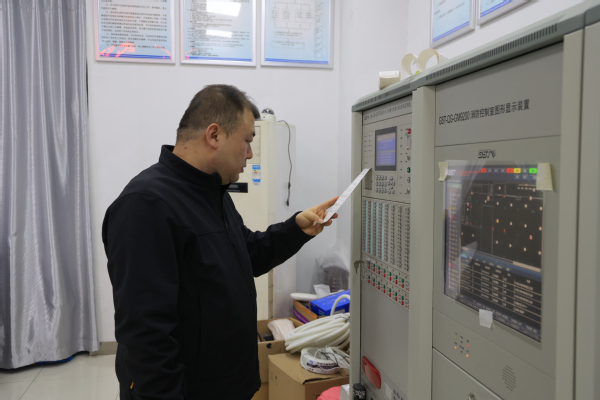 图为张金华同志检查消防联动控制器 摄影:芮雨欣