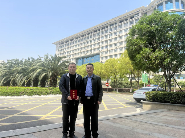 图为湖北省公安厅内保总队方宁支队长(右)来校为张金华同志(左)颁发证书 摄影:曾波