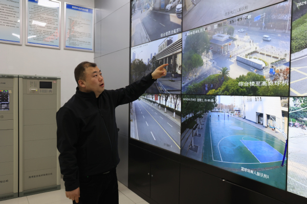 图为张金华同志查看校园监控 摄影:芮雨欣