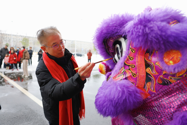 图为幸福堂副书记为龙狮点睛 摄影:孙欢欢