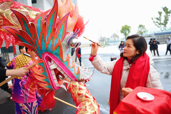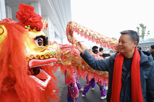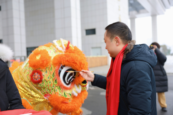 图为彭秀春董事长为龙狮点睛 摄影:孙欢欢
