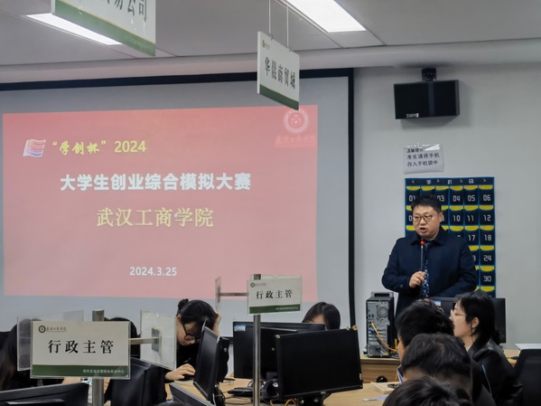 新闻中心讯(特约记者 杨沁)3月25日中午12:30,第十一届“学创杯”全国大学生创业综合模拟大赛校内选拔赛动员大会暨启动仪式在实验教学中心现代企业运营综合实训中心举行。本次校内选拔赛在各二级学院老师的大力宣传下,参赛学生人数又创新高,共有161名参赛选手参会。竞赛平台方杭州贝腾科技有限公司华中区总经理潘津津应邀来到现场作竞赛动员宣讲。